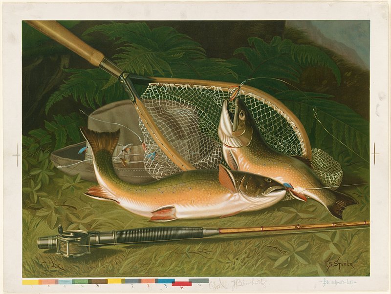 Two fishes caught on a net illustration from Canoe and camera a two hundred mile tour through the Maine forests by T.S.… https://www.rawpixel.com/image/556373/two-fishes-net-vintage-illustrationFree Image from public domain license