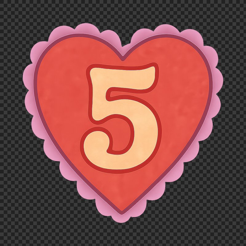 PNG Heart-shaped number five illustration. https://www.rawpixel.com/image/24540889/png-heart-shaped-number-five-illustrationView license