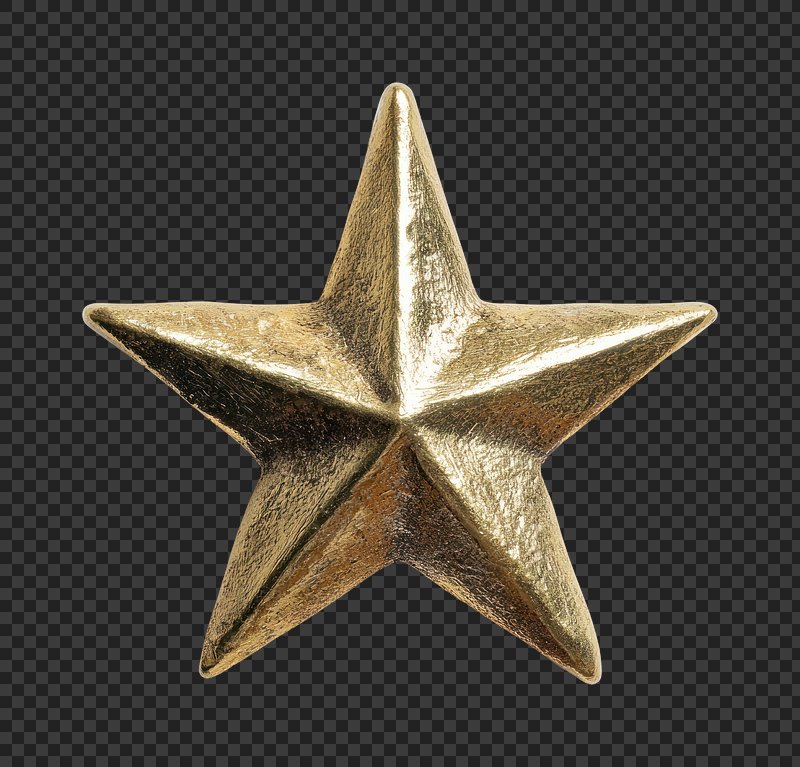 Golden star with textured surface. https://www.rawpixel.com/image/23609687/golden-star-with-textured-surfaceView license