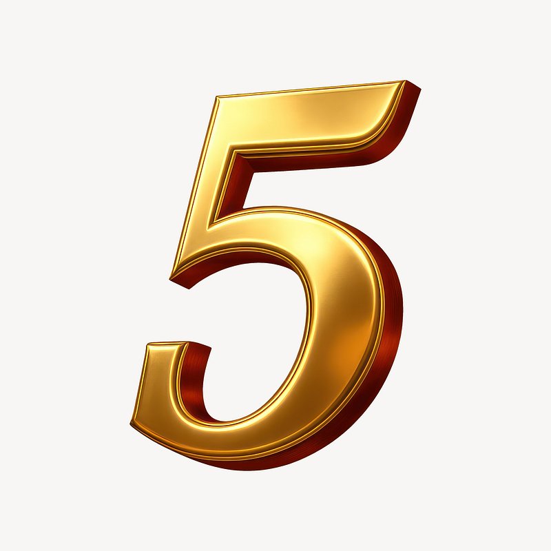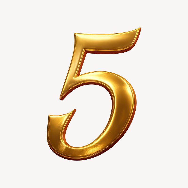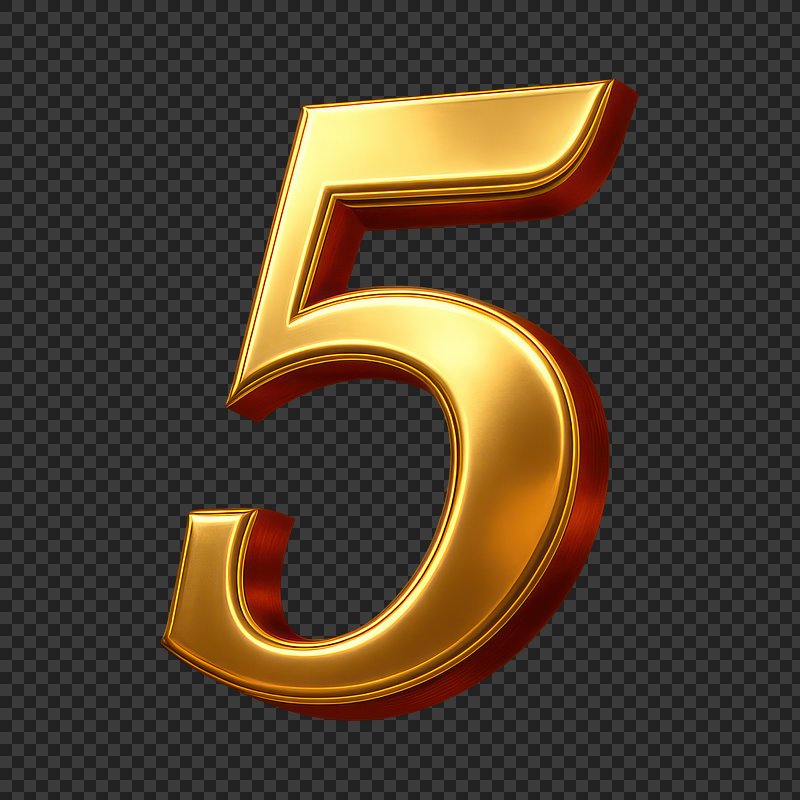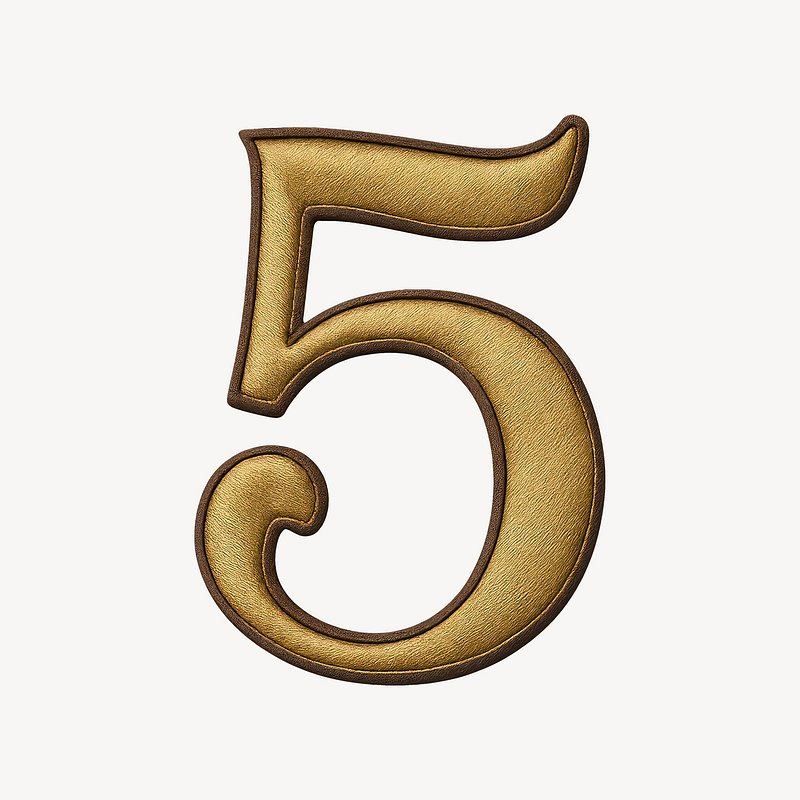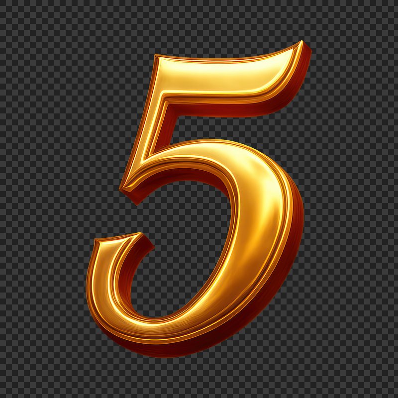 Golden number five illustration. https://www.rawpixel.com/image/24790606/golden-number-five-illustrationView license