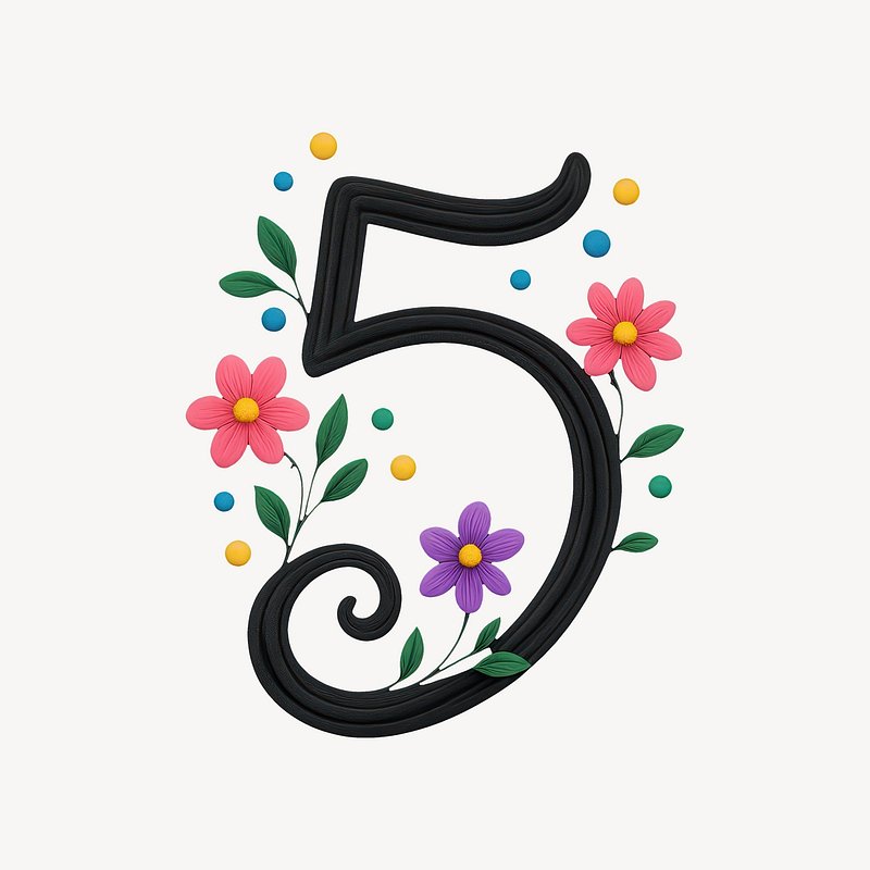 Floral number five illustration. https://www.rawpixel.com/image/24956976/floral-number-five-illustrationView license