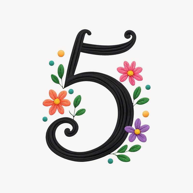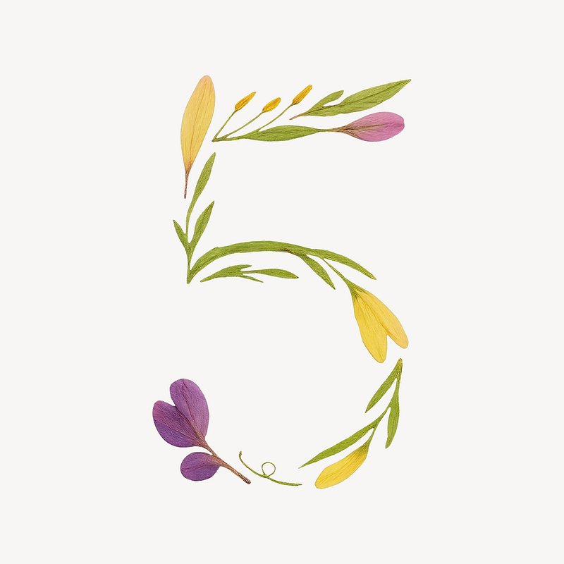 Floral numeral five illustration. https://www.rawpixel.com/image/24956656/floral-numeral-five-illustrationView license