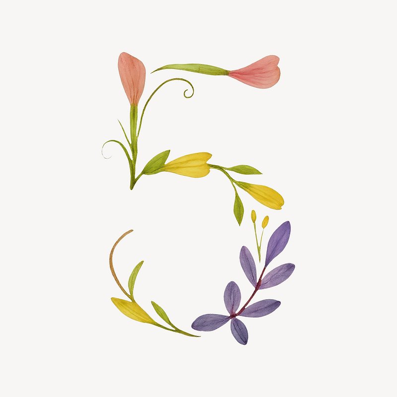 Floral number five illustration https://www.rawpixel.com/image/24956960/floral-number-five-illustrationView license