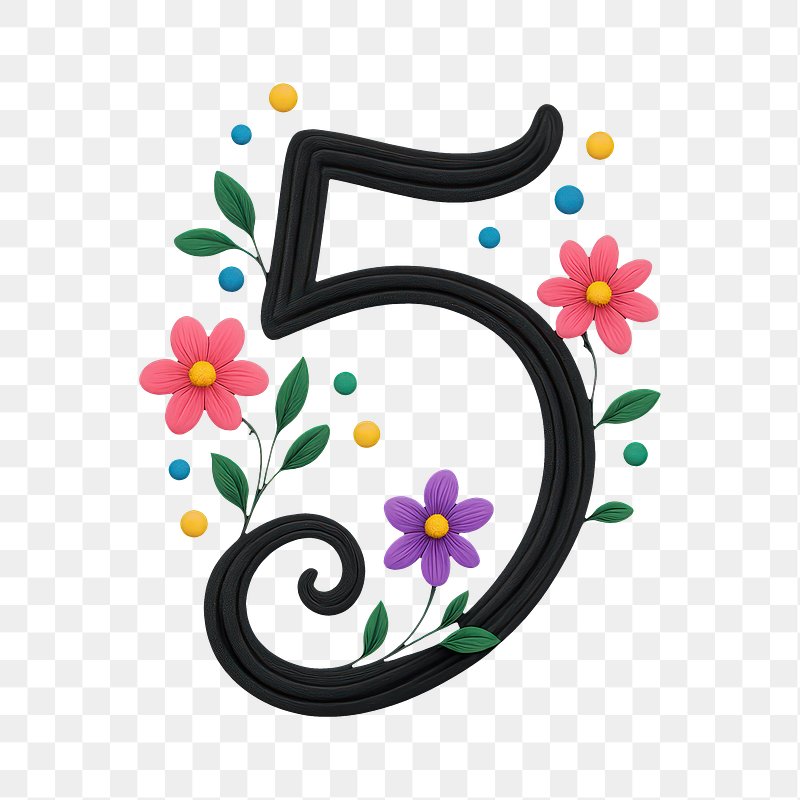 PNG Floral number five illustration. https://www.rawpixel.com/image/24929294/png-floral-number-five-illustrationView license