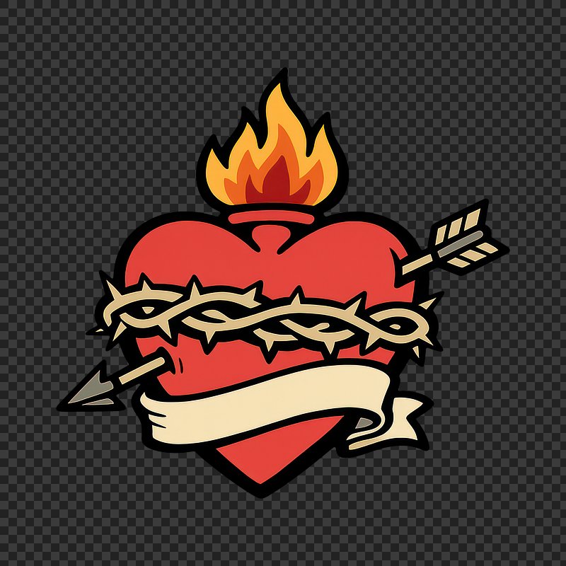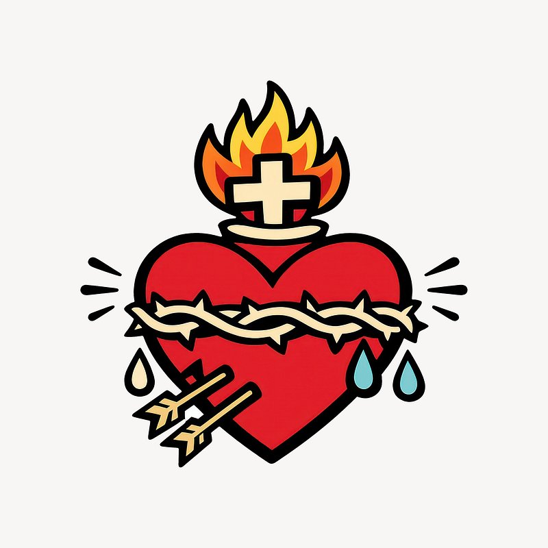 Sacred heart with symbolic elements. https://www.rawpixel.com/image/25625851/sacred-heart-with-symbolic-elementsView license