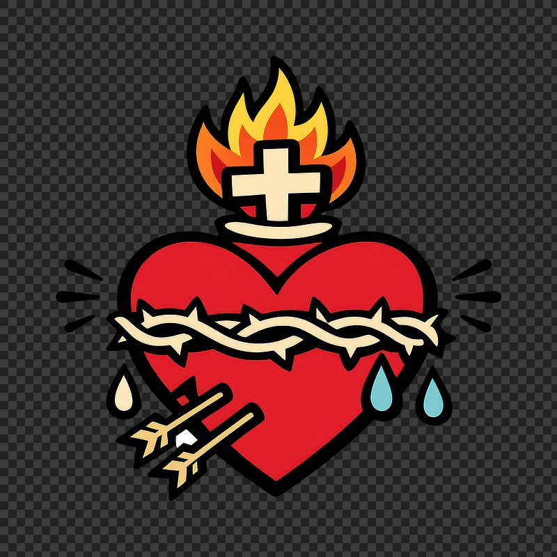 PNG Sacred heart with symbolic elements. https://www.rawpixel.com/image/25560505/png-sacred-heart-with-symbolic-elementsView license