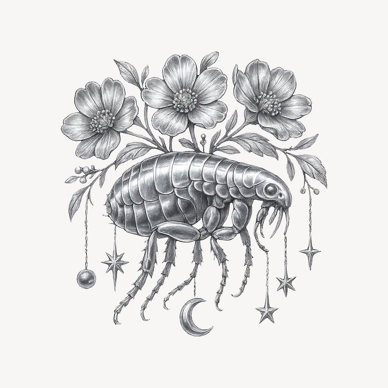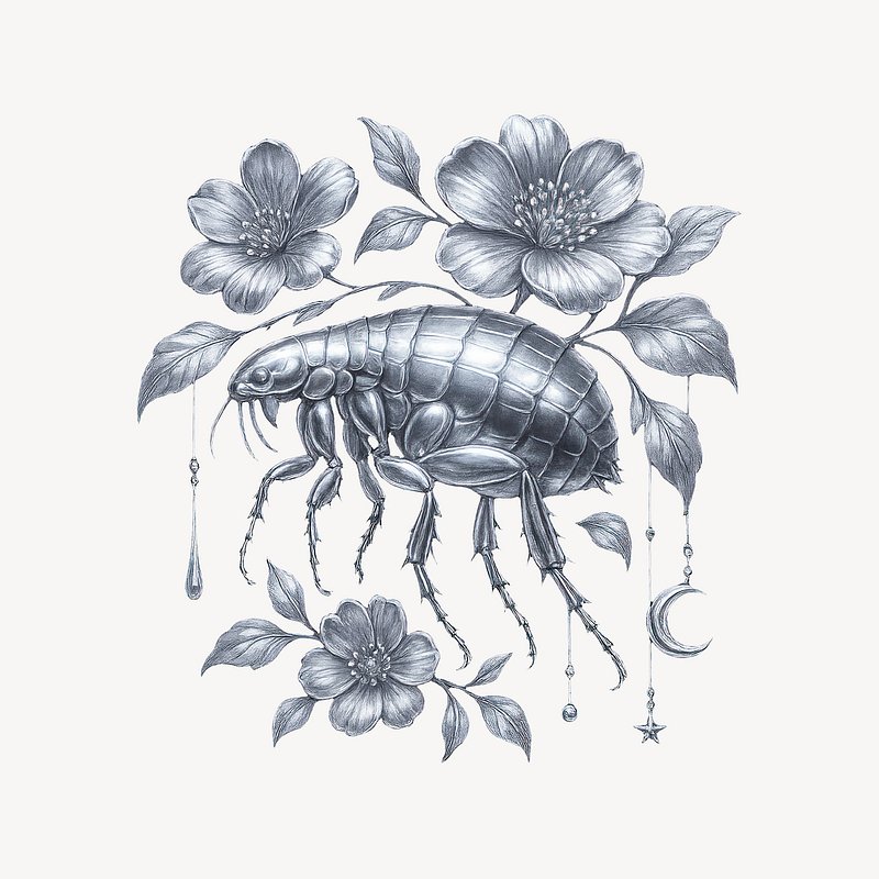 Flea illustration from The Naturalist's Miscellany (1789-1813) by George Shaw (1751-1813). https://www.rawpixel.com/image/386823/free-illustration-image-flea-bug-animalsFree Image from public domain license