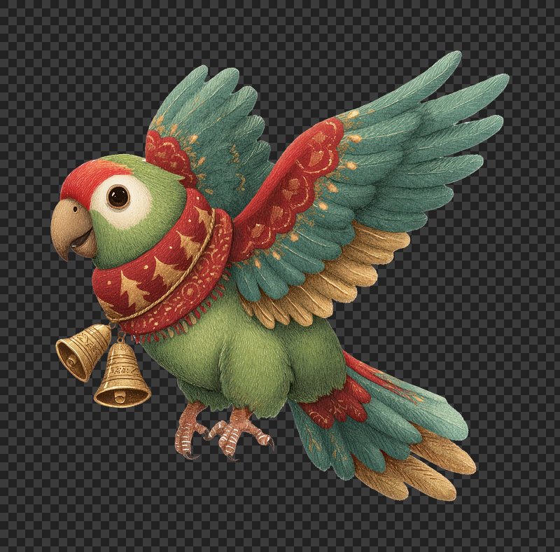 PNG Festive parrot with decorative bells. https://www.rawpixel.com/image/24022075/png-festive-parrot-with-decorative-bellsView license