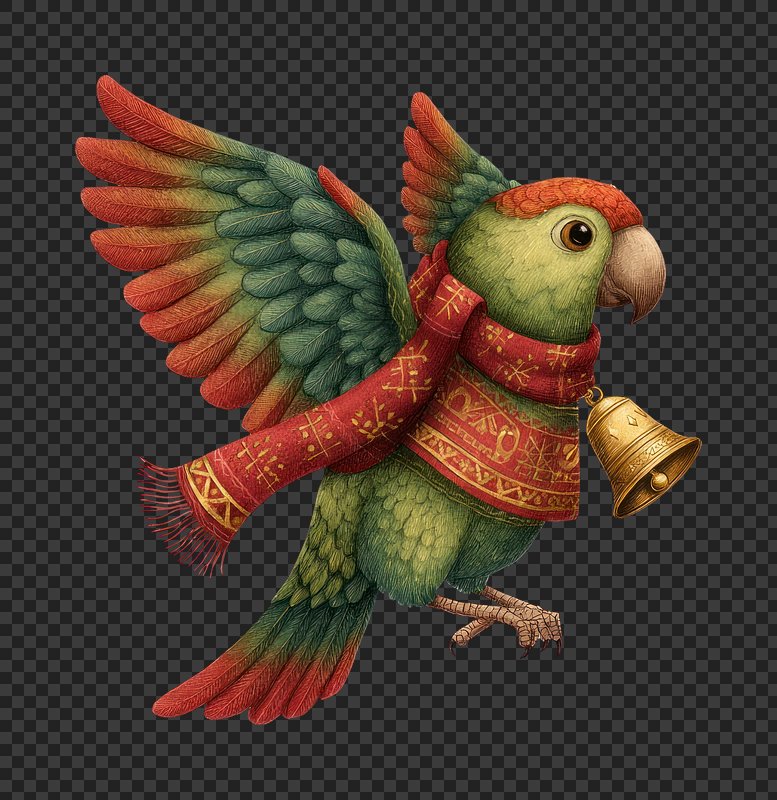 PNG Festive parrot with golden bell. https://www.rawpixel.com/image/24022606/png-festive-parrot-with-golden-bellView license