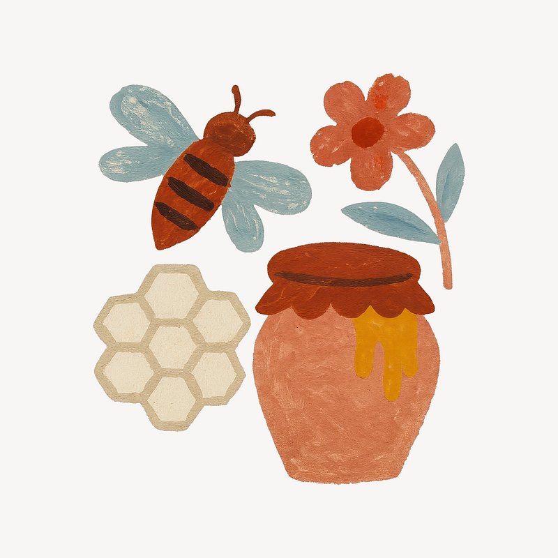 Whimsical honey-themed illustration https://www.rawpixel.com/image/24854911/whimsical-honey-themed-illustrationView license