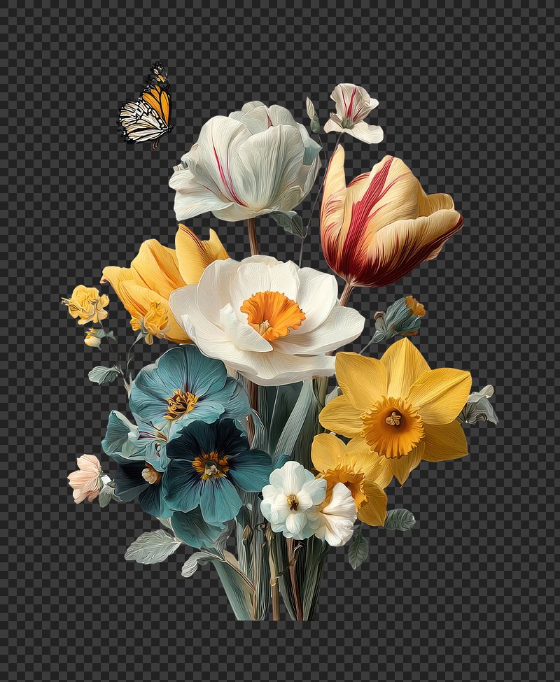 PNG Vibrant floral bouquet with butterfly. https://www.rawpixel.com/image/25085696/png-vibrant-floral-bouquet-with-butterflyView license
