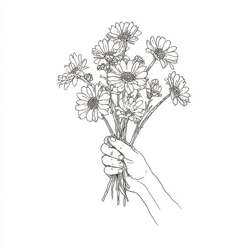 Hand holding daisy bouquet illustration. https://www.rawpixel.com/image/24939538/hand-holding-daisy-bouquet-illustrationView license