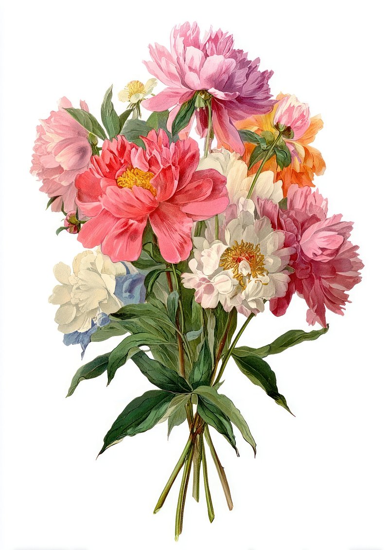Vibrant peony bouquet illustration. https://www.rawpixel.com/image/25628752/vibrant-peony-bouquet-illustrationView license