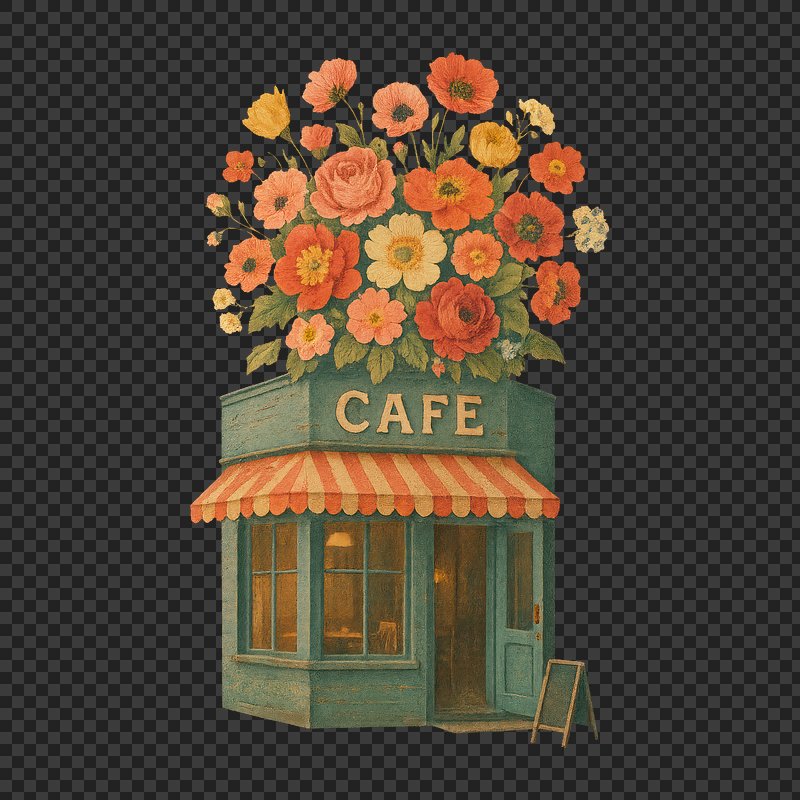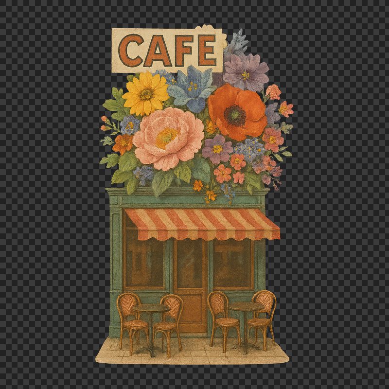 PNG Charming floral cafe illustration. https://www.rawpixel.com/image/22719680/png-charming-floral-cafe-illustrationView license