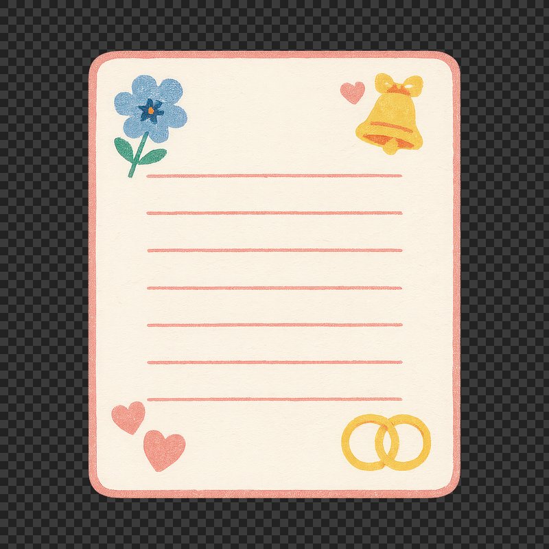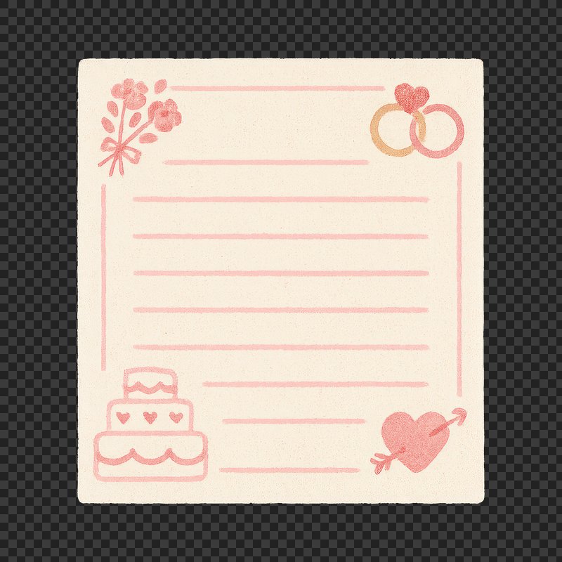 PNG Wedding-themed note paper illustration. https://www.rawpixel.com/image/23652758/png-wedding-themed-note-paper-illustrationView license