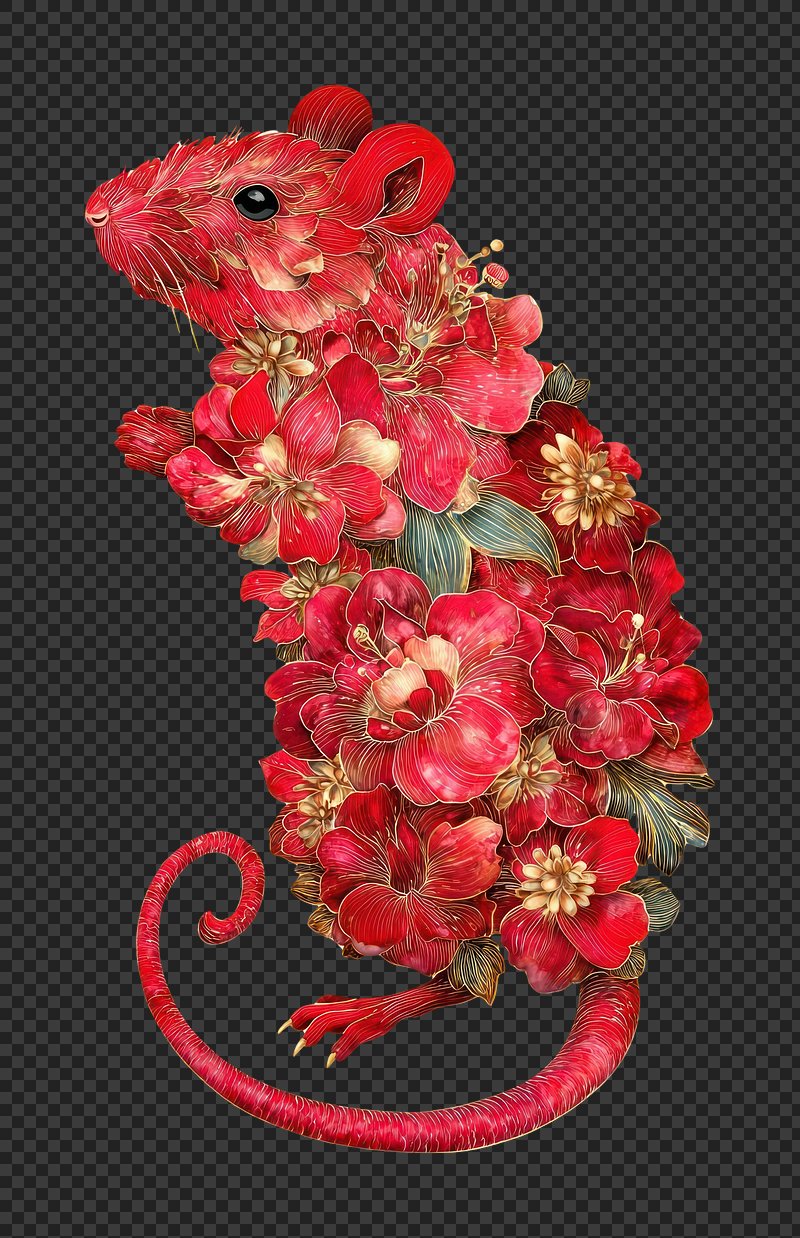 PNG Floral rat illustration with elegance. https://www.rawpixel.com/image/22162542/png-floral-rat-illustration-with-eleganceView license