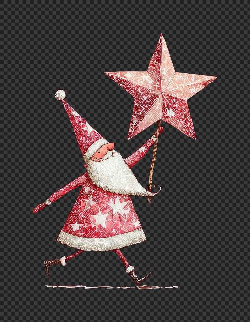 PNG Whimsical Santa holding star. https://www.rawpixel.com/image/22163468/png-whimsical-santa-holding-starView license