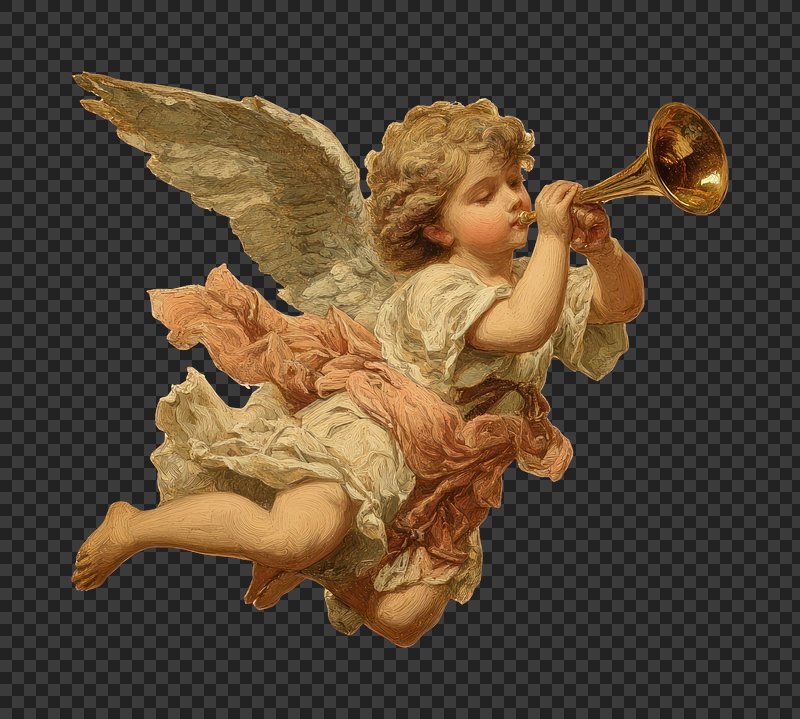 PNG Cherubic angel playing trumpet https://www.rawpixel.com/image/22936993/png-cherubic-angel-playing-trumpetView license