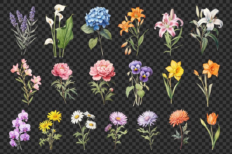 PNG Colorful hand-drawn floral illustrations on transparent background https://www.rawpixel.com/image/24956062/png-colorful-hand-drawn-floral-illustrations-transparent-backgroundView license