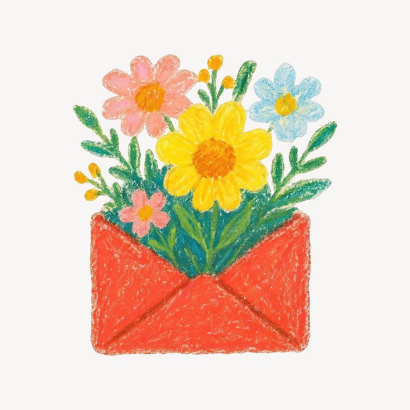 Colorful flowers in envelope illustration. https://www.rawpixel.com/image/24788949/colorful-flowers-envelope-illustrationView license