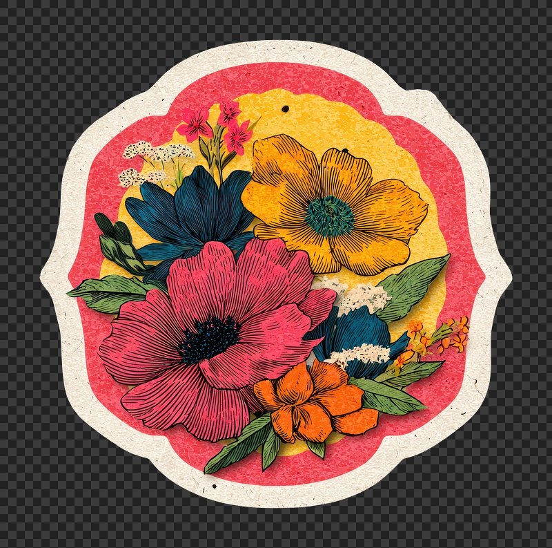 PNG Vibrant floral round label design. https://www.rawpixel.com/image/20891863/png-vibrant-floral-round-label-designView license