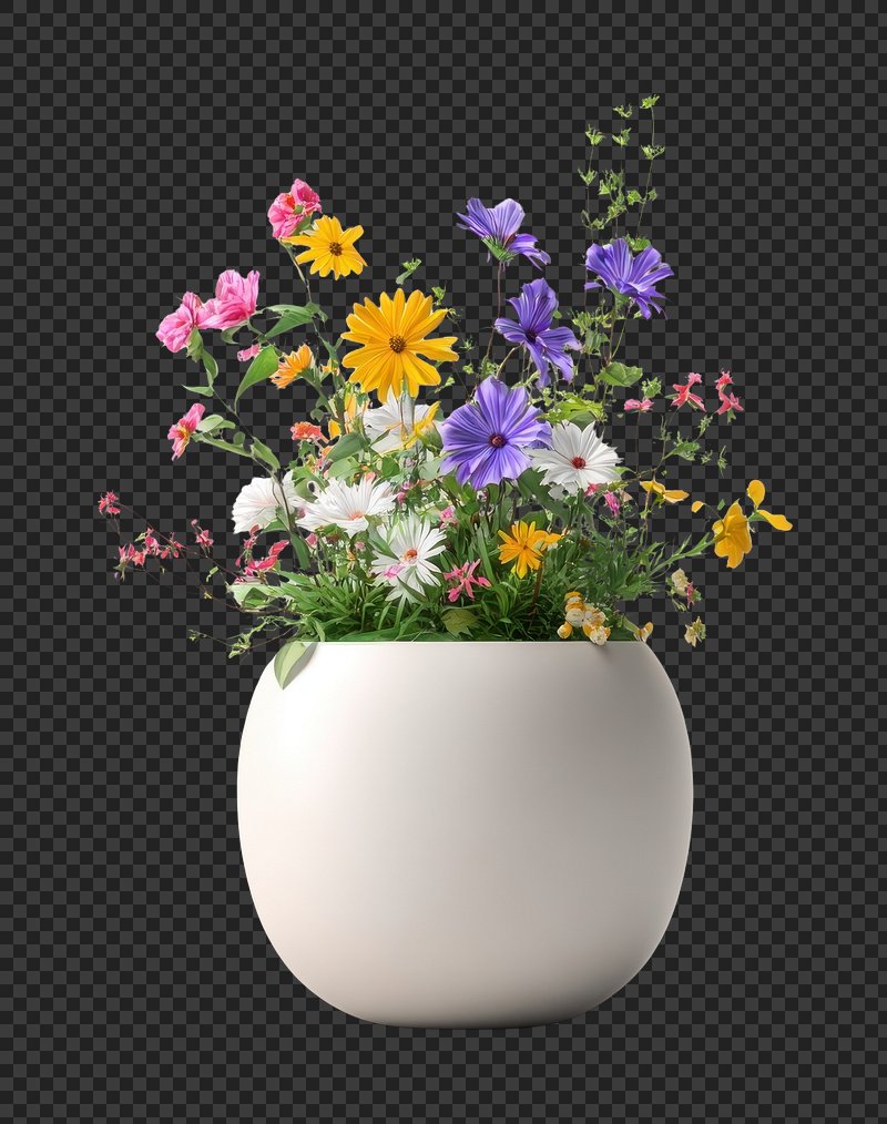 PNG Colorful flowers in white pot. https://www.rawpixel.com/image/24918473/png-colorful-flowers-white-potView license