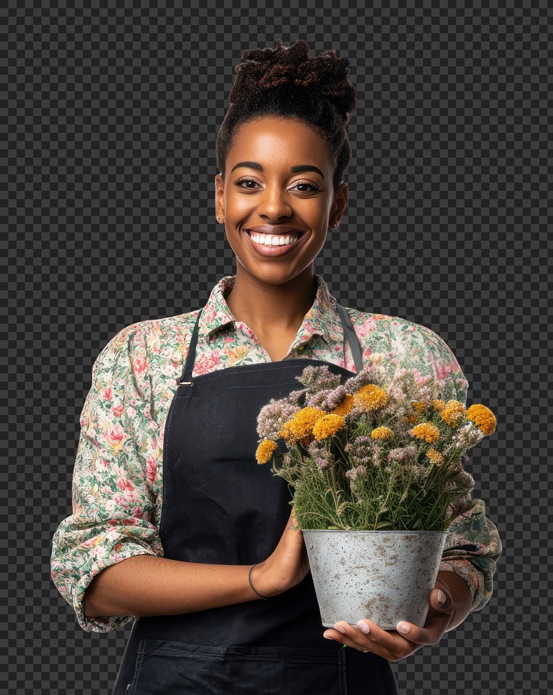 PNG Smiling florist holding vibrant flowers. https://www.rawpixel.com/image/25253126/png-smiling-florist-holding-vibrant-flowersView license