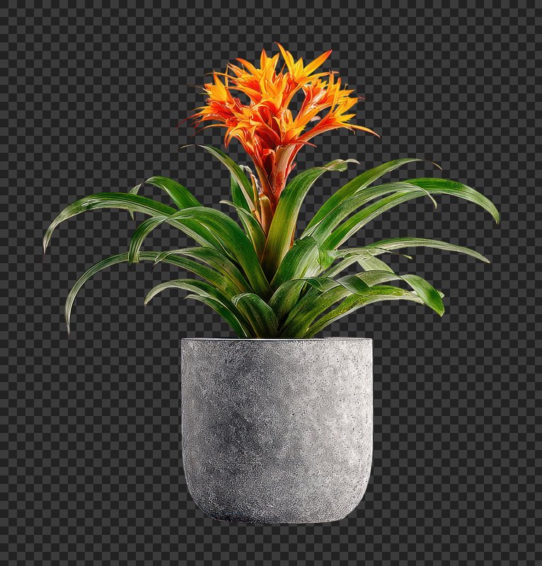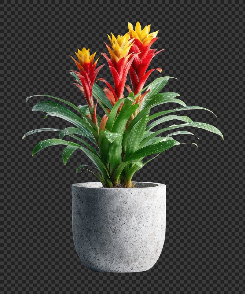 PNG Vibrant bromeliad in concrete pot. https://www.rawpixel.com/image/25977099/png-vibrant-bromeliad-concrete-potView license
