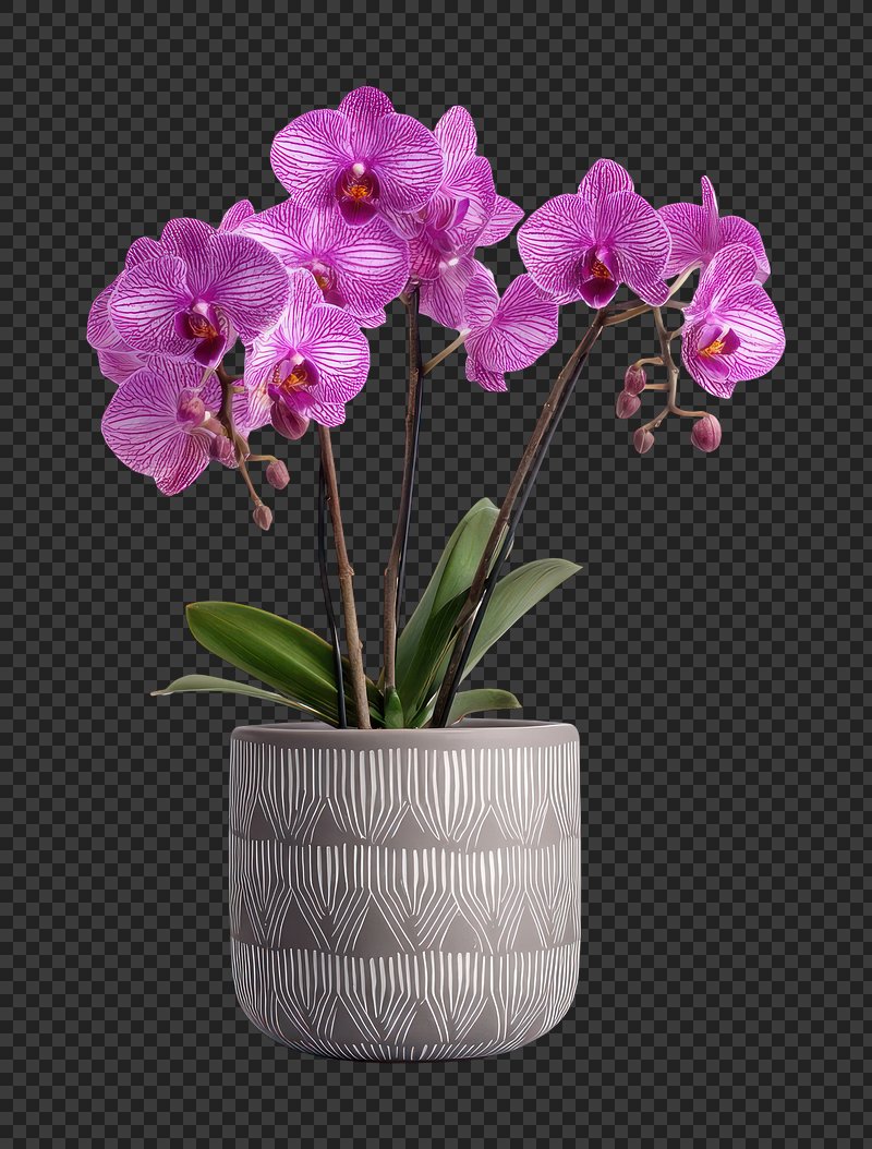 PNG Elegant purple orchids in pot. https://www.rawpixel.com/image/25977045/png-elegant-purple-orchids-potView license