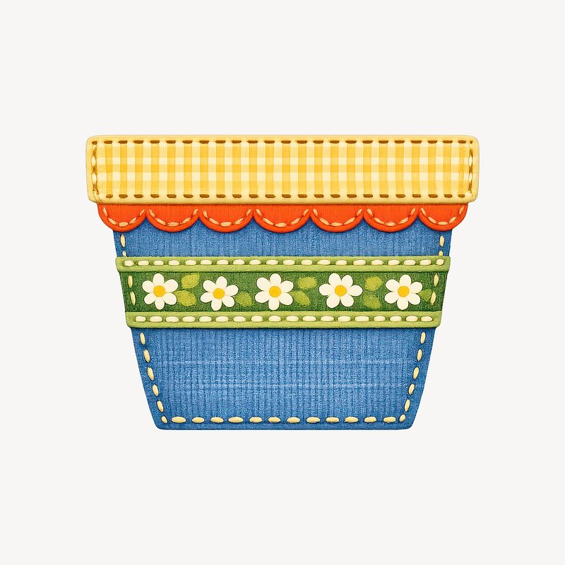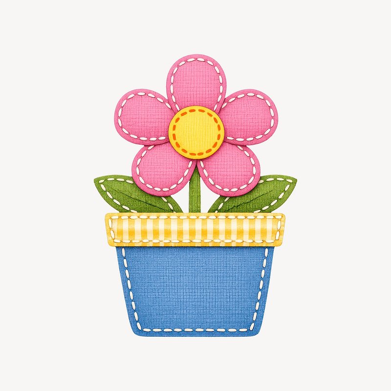 Colorful stitched flower pot illustration. https://www.rawpixel.com/image/25792229/colorful-stitched-flower-pot-illustrationView license