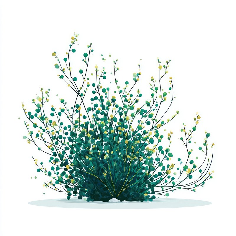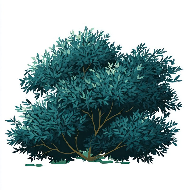 Dense dark green bush with spreading branches illustration decorative botanical. https://www.rawpixel.com/image/24911251/image-plant-art-natureView license