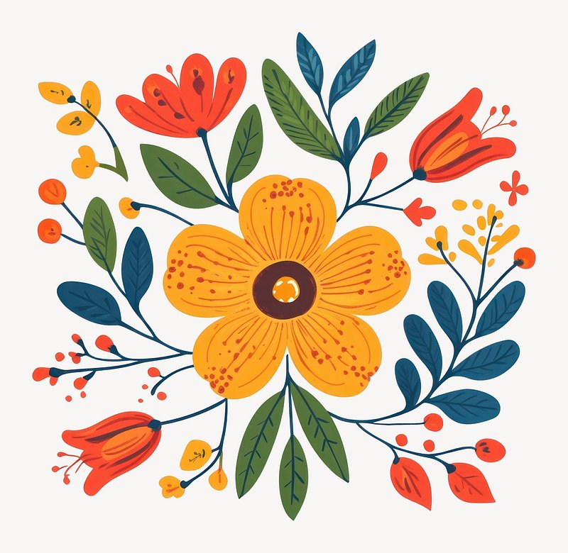 Flower folk art design elements vector set https://www.rawpixel.com/image/1205157/floral-folk-art-setView license