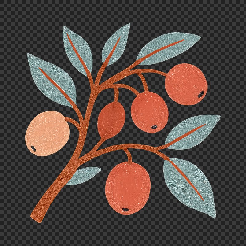 PNG Illustrated branch with ripe fruits. https://www.rawpixel.com/image/24794930/png-illustrated-branch-with-ripe-fruitsView license