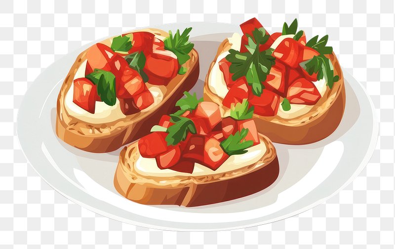 PNG Bruschetta in a plate illustration bruschetta white. https://www.rawpixel.com/image/16890958/png-bruschetta-plate-illustration-bruschetta-whiteView license