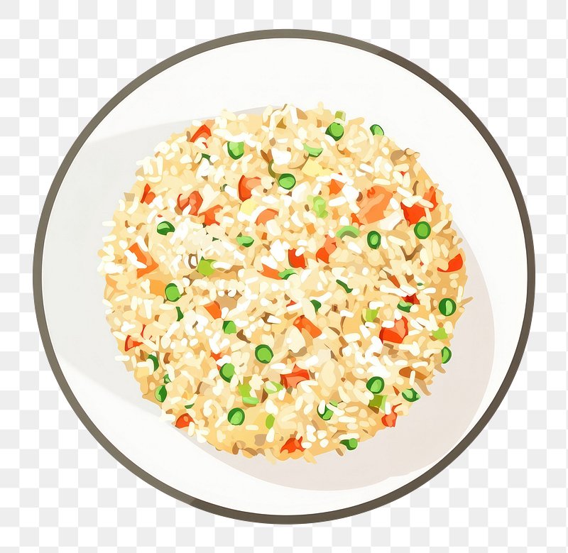 PNG Fried rice in a plate illustration fried food. https://www.rawpixel.com/image/16891440/png-fried-rice-plate-illustration-fried-foodView license