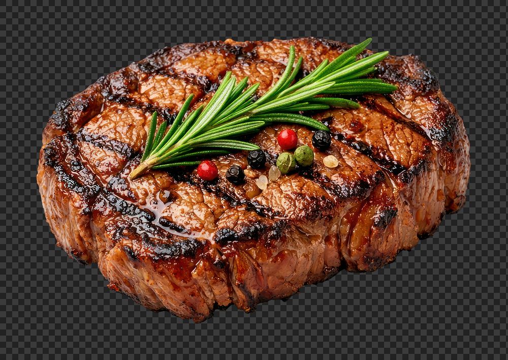 PNG Grilled steak garnished with rosemary. https://www.rawpixel.com/image/26069102/png-grilled-steak-garnished-with-rosemaryView license