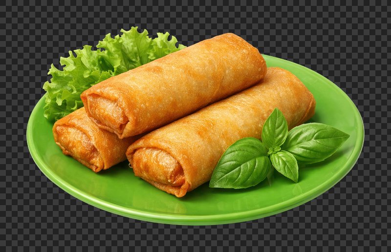 PNG Crispy spring rolls on plate. https://www.rawpixel.com/image/26226104/png-crispy-spring-rolls-plateView license