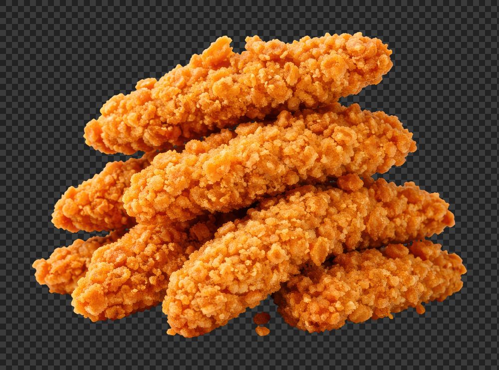 PNG Crispy golden fried chicken tenders. https://www.rawpixel.com/image/26361652/png-crispy-golden-fried-chicken-tendersView license