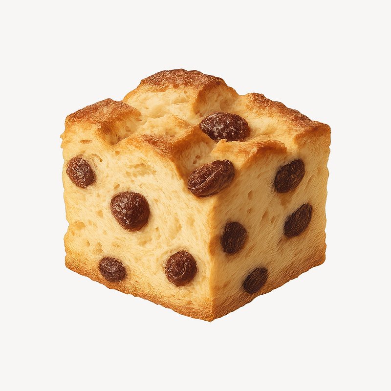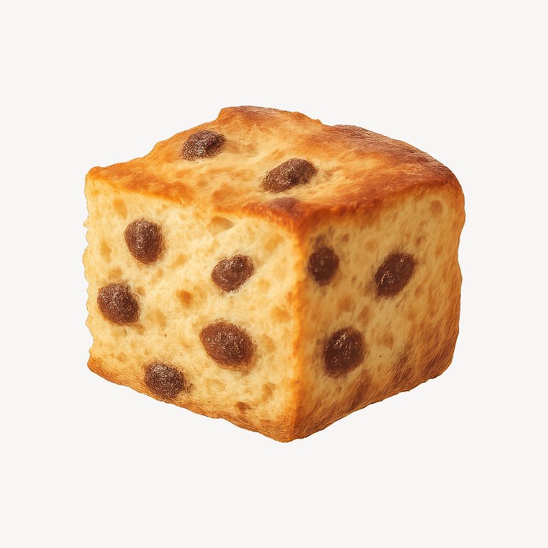 Realistic raisin bread cube illustration. https://www.rawpixel.com/image/21621574/realistic-raisin-bread-cube-illustrationView license