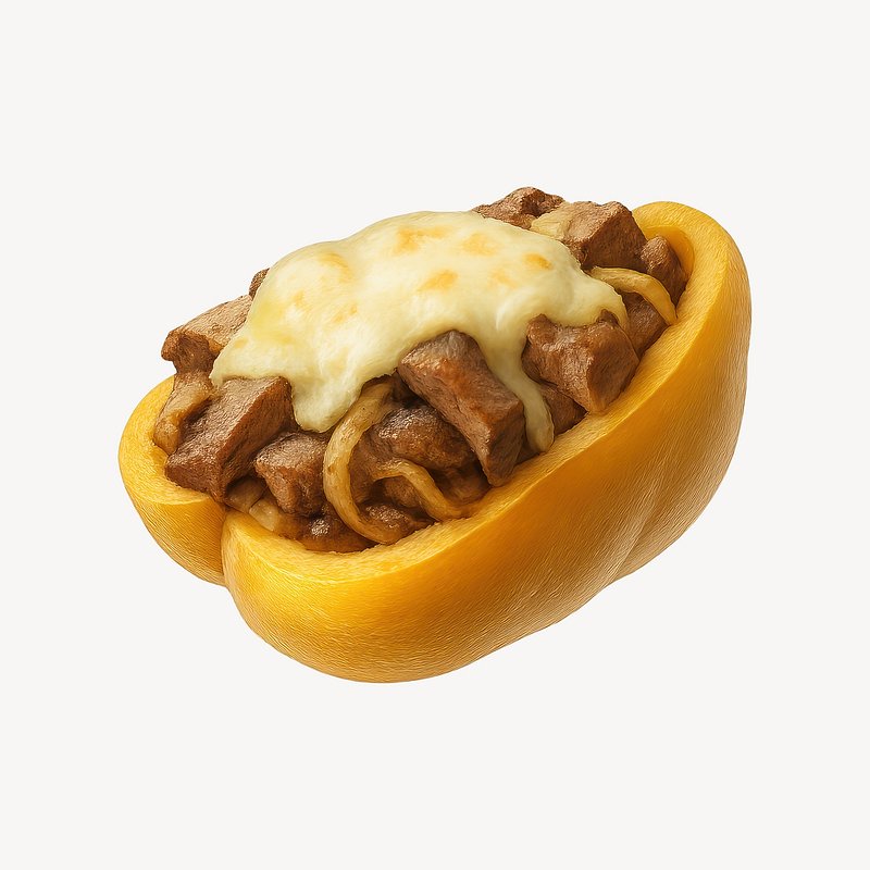 Cheesy beef-stuffed yellow pepper. https://www.rawpixel.com/image/21625563/cheesy-beef-stuffed-yellow-pepperView license