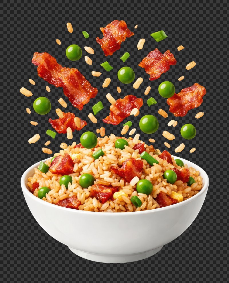 PNG Exploding bacon fried rice food delicious flavorful. https://www.rawpixel.com/image/15523977/png-exploding-bacon-fried-rice-food-delicious-flavorfulView license