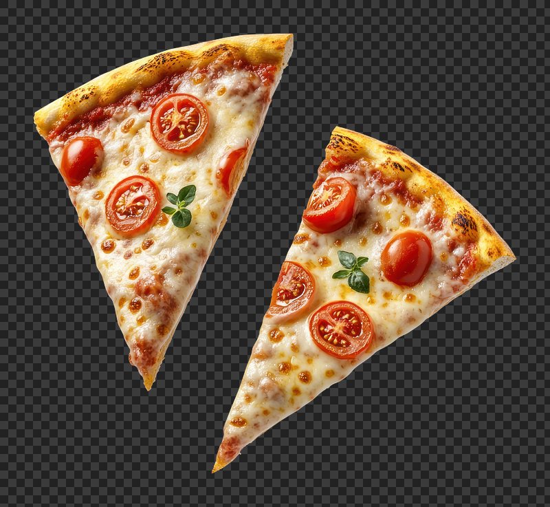 PNG Two slices of pizza cheese tomato food. https://www.rawpixel.com/image/17547485/png-two-slices-pizza-cheese-tomato-foodView license