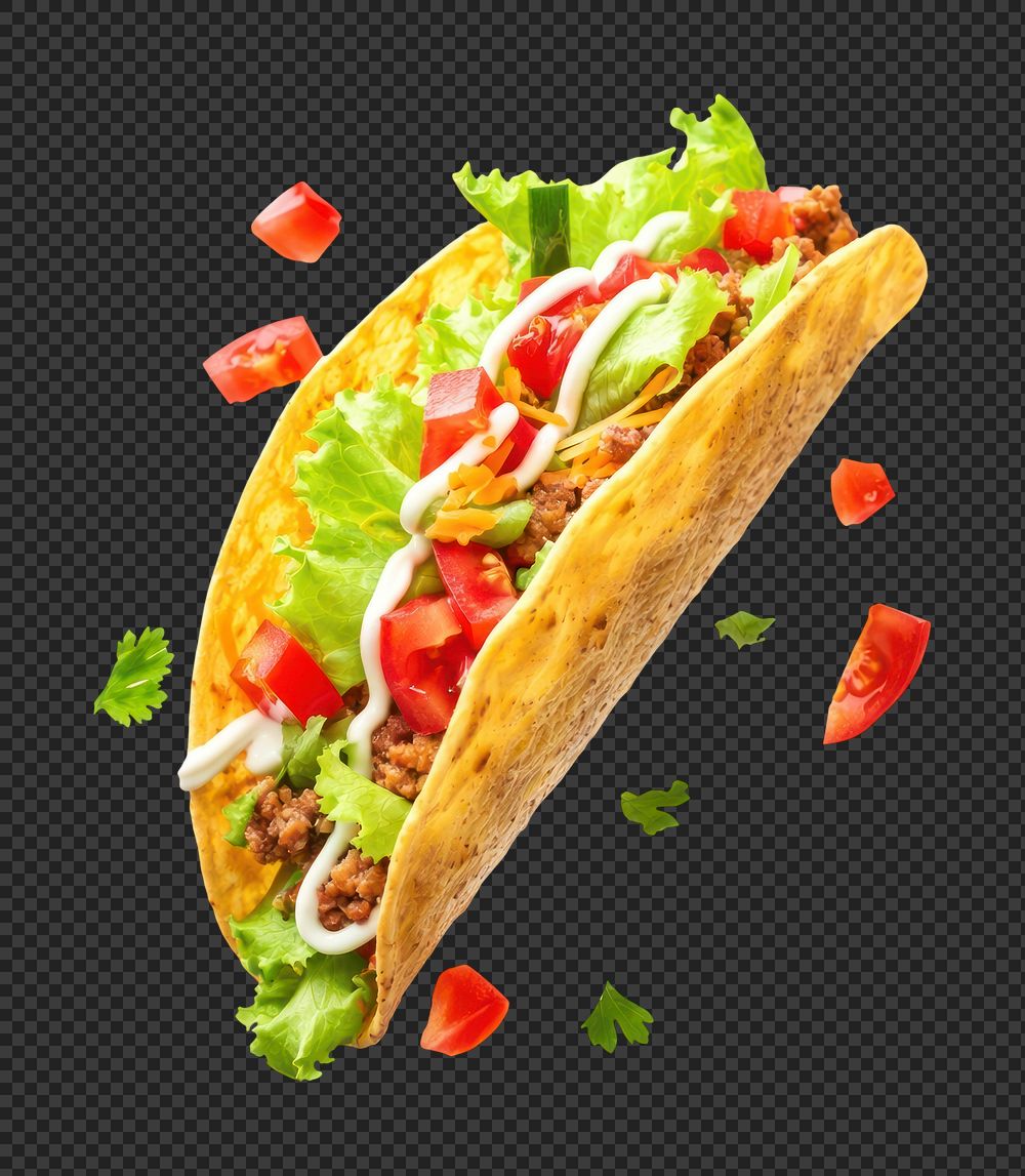 PNG Classic Taco Explosion taco lettuce crispy. https://www.rawpixel.com/image/15525979/png-classic-taco-explosion-taco-lettuce-crispyView license