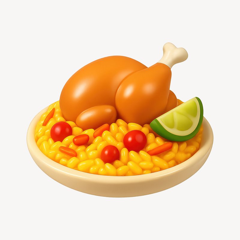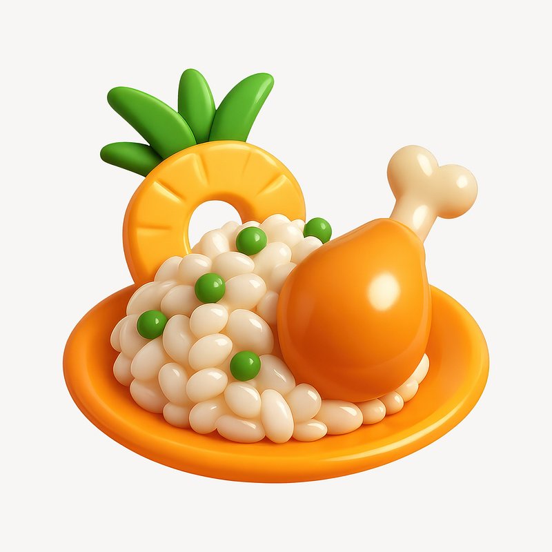 Colorful 3D chicken rice illustration. https://www.rawpixel.com/image/20302254/colorful-chicken-rice-illustrationView license