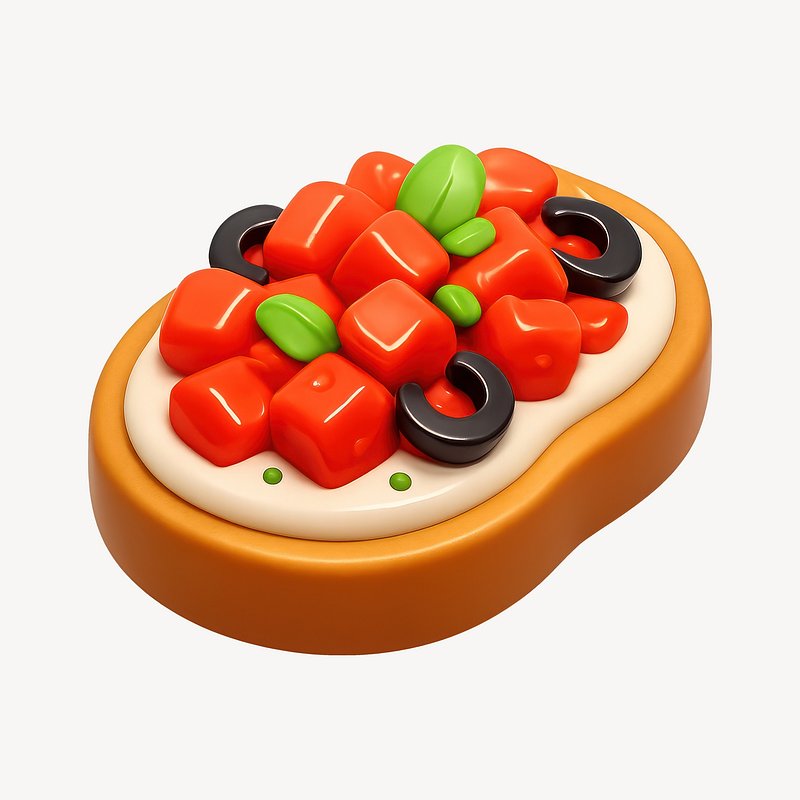 Colorful 3D bruschetta illustration. https://www.rawpixel.com/image/20718287/colorful-bruschetta-illustrationView license