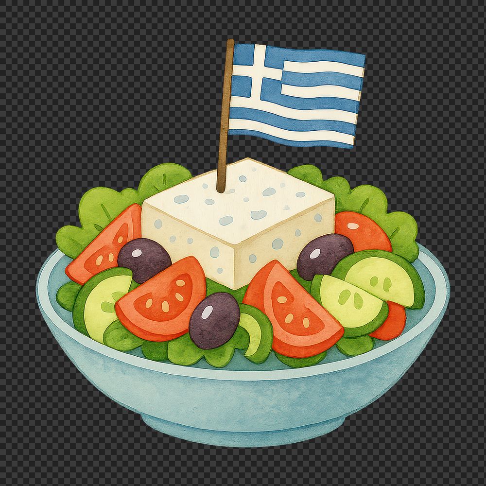 PNG Greek salad illustration with flag. https://www.rawpixel.com/image/19123588/png-greek-salad-illustration-with-flagView license