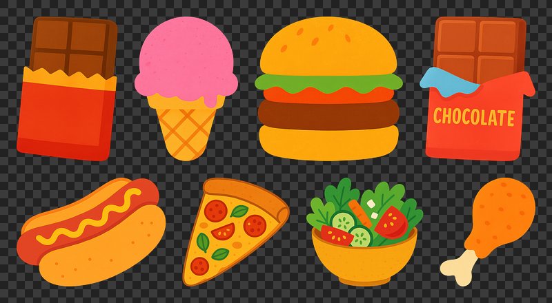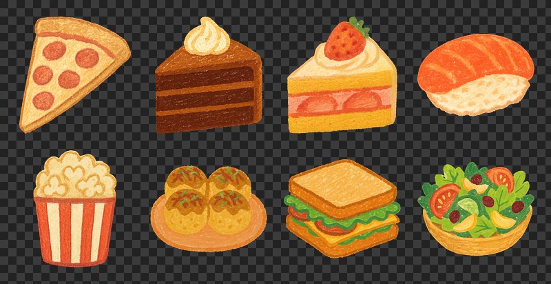 PNG Colorful cartoon food icons on transparent background https://www.rawpixel.com/image/26217634/png-colorful-cartoon-food-icons-transparent-backgroundView license