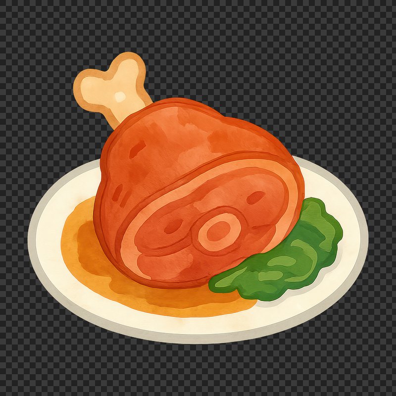 PNG Illustrated ham with greens. https://www.rawpixel.com/image/18772675/png-illustrated-ham-with-greensView license