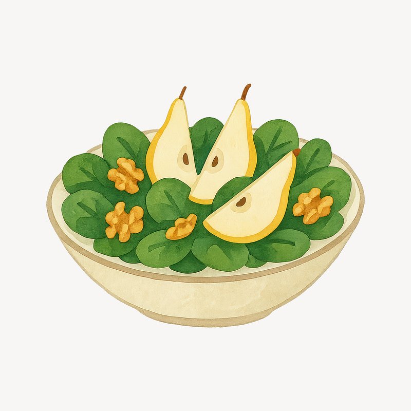 Fresh pear walnut spinach salad. https://www.rawpixel.com/image/19448288/fresh-pear-walnut-spinach-saladView license