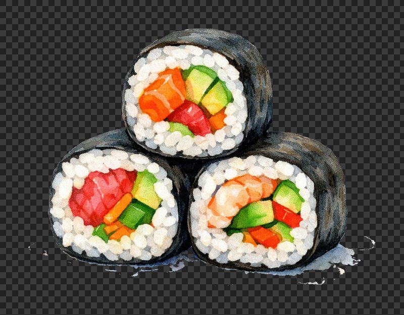 PNG Colorful sushi rolls illustration. https://www.rawpixel.com/image/26052043/png-colorful-sushi-rolls-illustrationView license